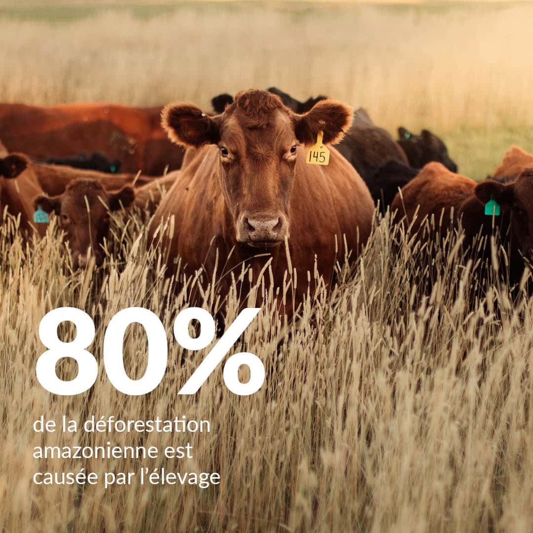 L’industrialisation de l’élevage augmente la production de soja en Amérique du sud, qui est ensuite importée pour nourrir le bétail. En Europe, 33 millions de tonnes de soja sont importées par an dont 87% est à destination de l’élevage.