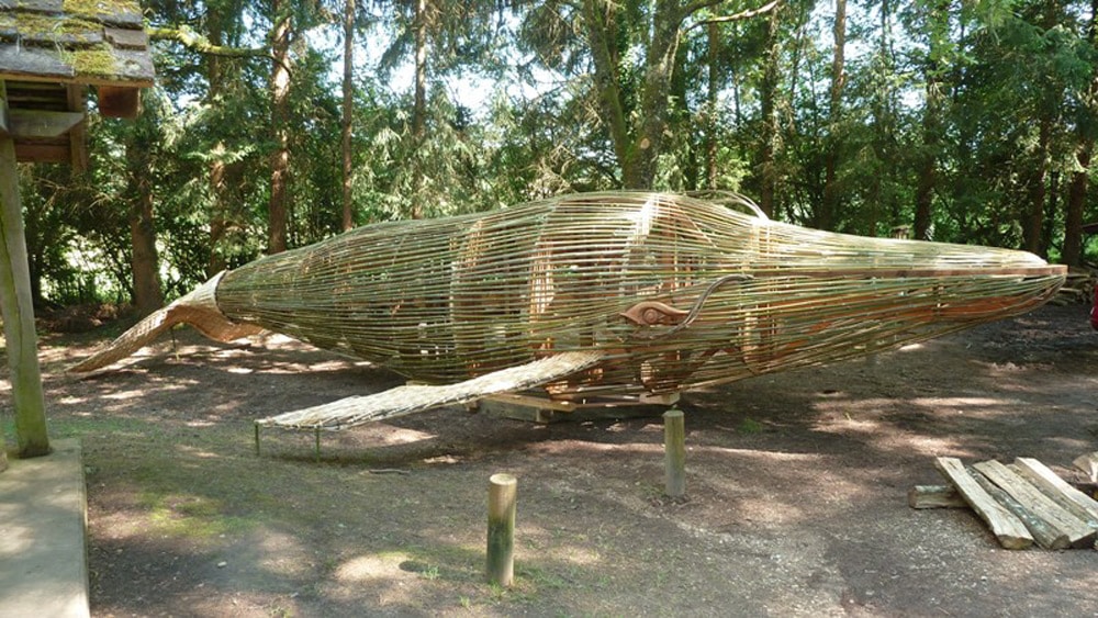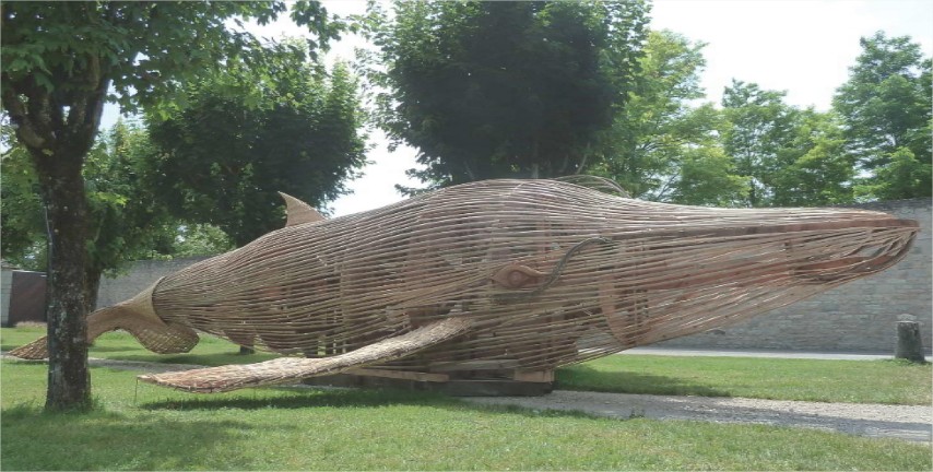 L’artiste Corinne Forsans nous fait l’amitié de confier à la Fondation GoodPlanet « La Baleine », une œuvre de 12m de long réalisée en bois de charpente recyclé, en osier et en bambous.