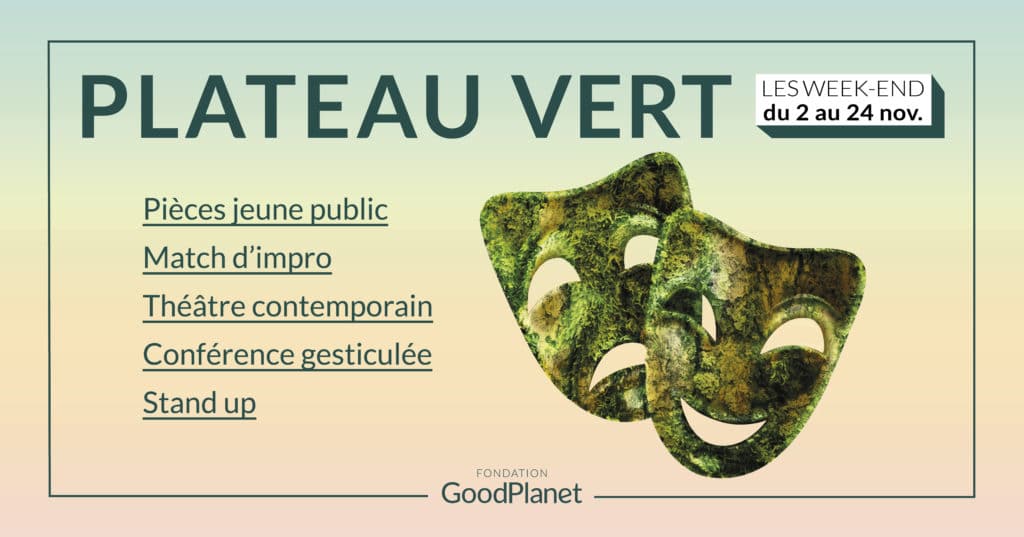 Pour la saison 2019, la Fondation GoodPlanet fait la part belle au théâtre, avec une ambition : mettre l’écologie sur le devant de la scène ! Tout au long du mois de novembre, le Festival Plateau Vert vous propose 7 spectacles qui questionnent notre attitude face au dérèglement climatique et ses conséquences et interrogent notre rapport à la nature et à l’autre.