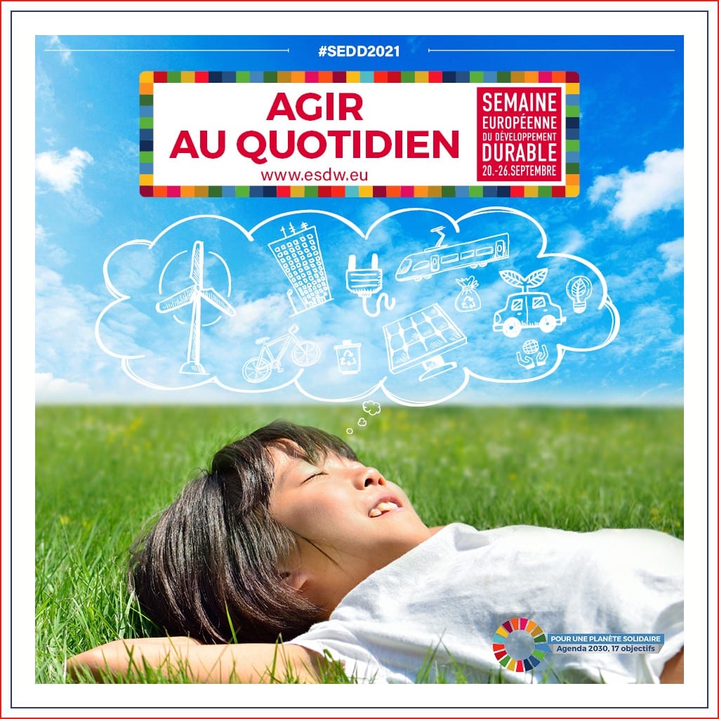 Depuis samedi 18 septembre, la semaine européenne du développement durable 2021 est lancée ! Elle se déroulera jusqu’au 8 octobre prochain, avec un temps fort du 20 au 26 septembre.