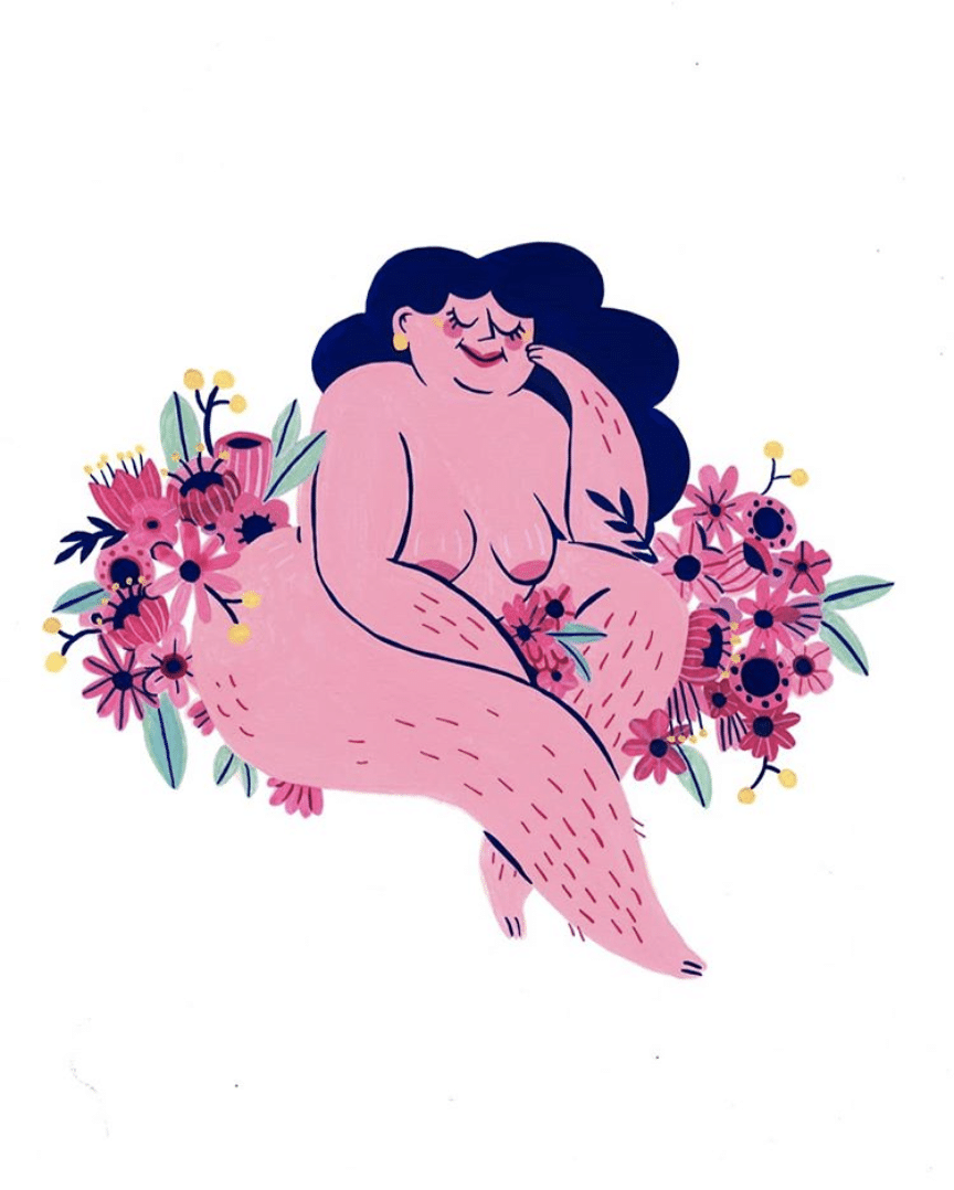Féminisme et nature peuvent cohabiter, et le travail de Marie Boiseau en est la preuve. Des illustrations qui mêlent des corps féminins divers, hors des canons de beauté, au milieu de fleurs colorées, on ne peut que vous conseiller de la suivre.