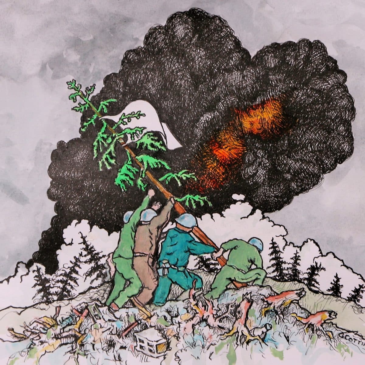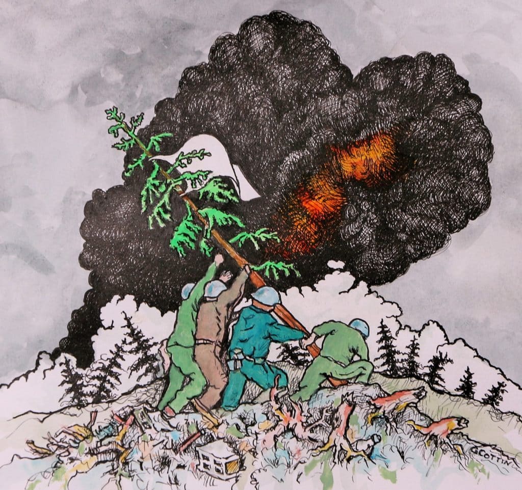 Pas seulement es guerres… les simples manifestations aussi : assez de voir en France des manifestants (dont la cause peut être par ailleurs louable) brûler par exemple des pneus en signe de protestation, ou faire rôtir des corps d’animaux sur des barbecues… Brûler des pneus pollue, manger de la viande tue les animaux et nuit à la planète.
