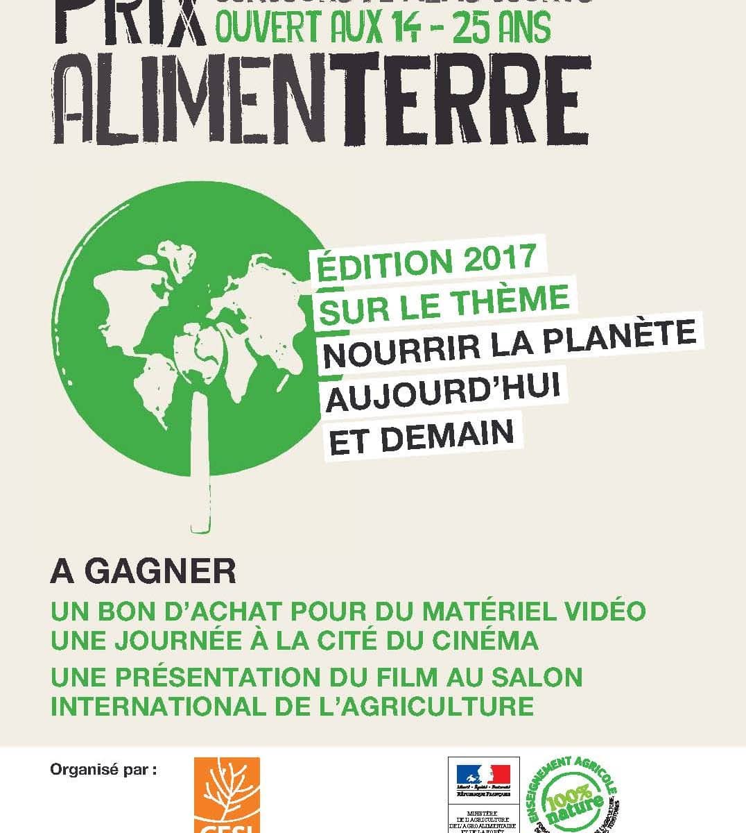 Après la réussite de l’édition 2016, le Comité Français pour la Solidarité Internationale (CFSI) et la Direction générale de l’enseignement et de la recherche (DGER) du Ministère de l’agriculture, de l’agroalimentaire et de la forêt lancent l’édition 2017 du Prix ALIMENTERRE, un concours de films courts (entre 2 et 5 minutes), ouvert à tout jeune (ou groupe de jeunes) entre 14 et 25 ans.