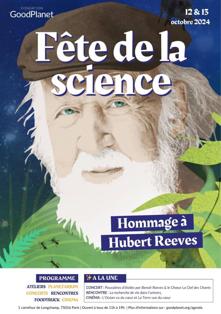 Le samedi 12 et le dimanche 13 octobre, la Fondation GoodPlanet célèbre la Fête de la Science. Elle la dédie cette année à Hubert Reeves, disparu il y a un an. Découvrez le programme de ce week-end d’hommage à l’humaniste et astrophysicien.