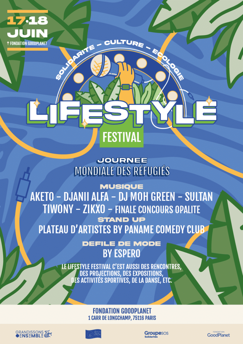Rendez-vous les  17  et  18  juin  2023,  à  l’occasion  de  la  Journée  mondiale  des  réfugié·e·s, à la Fondation GoodPlanet. Grandissons Ensemble, France terre d’asile, le Groupe SOS Solidarités et la Fondation GoodPlanet organisent le LIFESTYLE FESTIVAL : deux jours de partage pour promouvoir un mode de vie qui valorise la solidarité, la convivialité et l’ouverture culturelle.