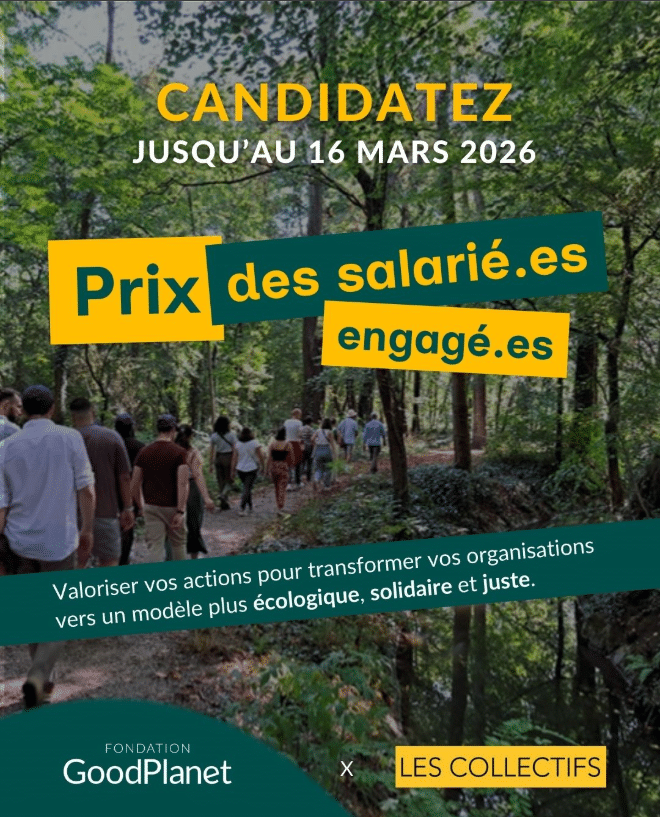 Issu d’une initiative commune de l’association Les Collectifs et de la Fondation GoodPlanet, le Prix des salarié·es engagé·es, est un prix qui vise à valoriser les actions portées par les collaborateurs et collaboratrices acteurs du changement au sein de leur organisation.