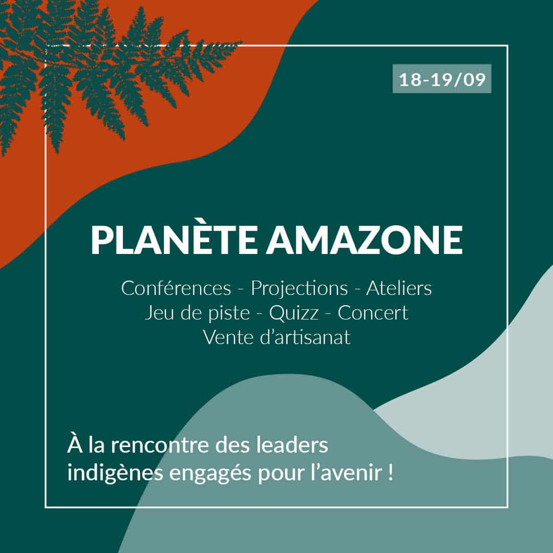 - Rencontre : Les dangers du colonialisme vert avec Le cacique Ninawa, le chef du peuple Huni Kui, sera accompagné de Gert- Peter Bruch fondateur de l’ONG Planète Amazone et Michel Podolak, vice-président de l’association Tchendukua.