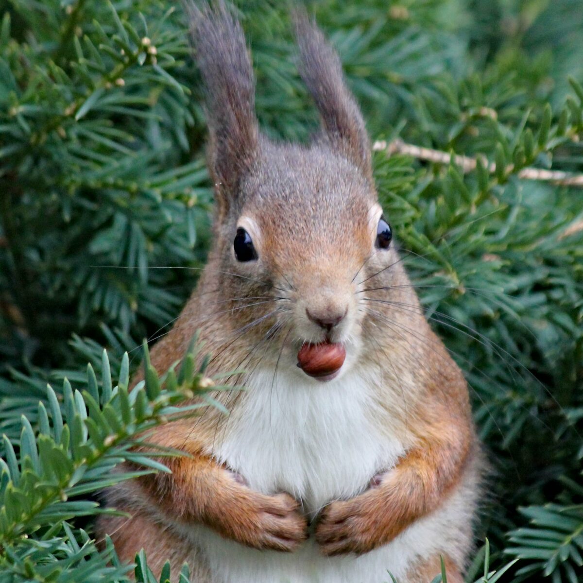 Contrairement aux marmottes et aux hérissons, l’écureuil n’hiberne pas, c’est pourquoi chaque automne il se met à enterrer ses provisions en prévision des mauvais jours.