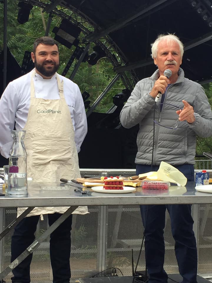 Il sera accompagné par Jean-Luc Fessard, à l’initiative de Bon pour le Climat, qui promeut une restauration bas carbone et dont l’action vise à réduire l’impact de l’alimentation sur le climat de moitié en accordant une place plus restreinte à la viande et en misant sur la réalisation d’une cuisine « responsable » respectant trois critères : la saison, le local, le végétal.