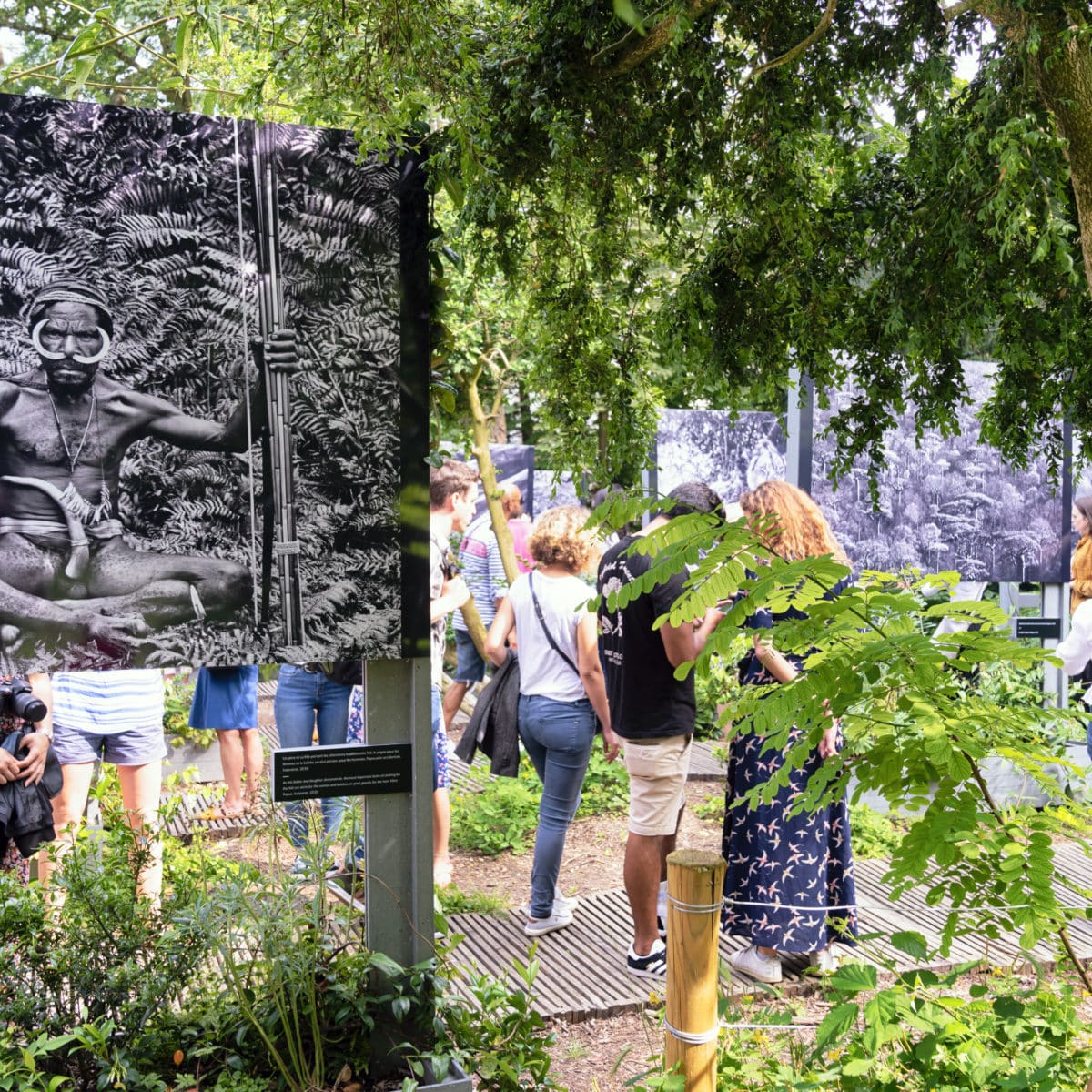 La présentation de cette exposition dans le parc du Domaine de Longchamp a fait l’objet d’une conception particulièrement soucieuse de l’environnement. En partenariat avec Alliance Carton Nature, les photos sont présentées sur des structures conçues par l’éco-designer Fabrice Peltier et fabriquées en polyAl, mélange de polyéthylène et d’aluminium, résidu ultime issu du recyclage des briques alimentaires qui se voient ainsi offrir une seconde vie.