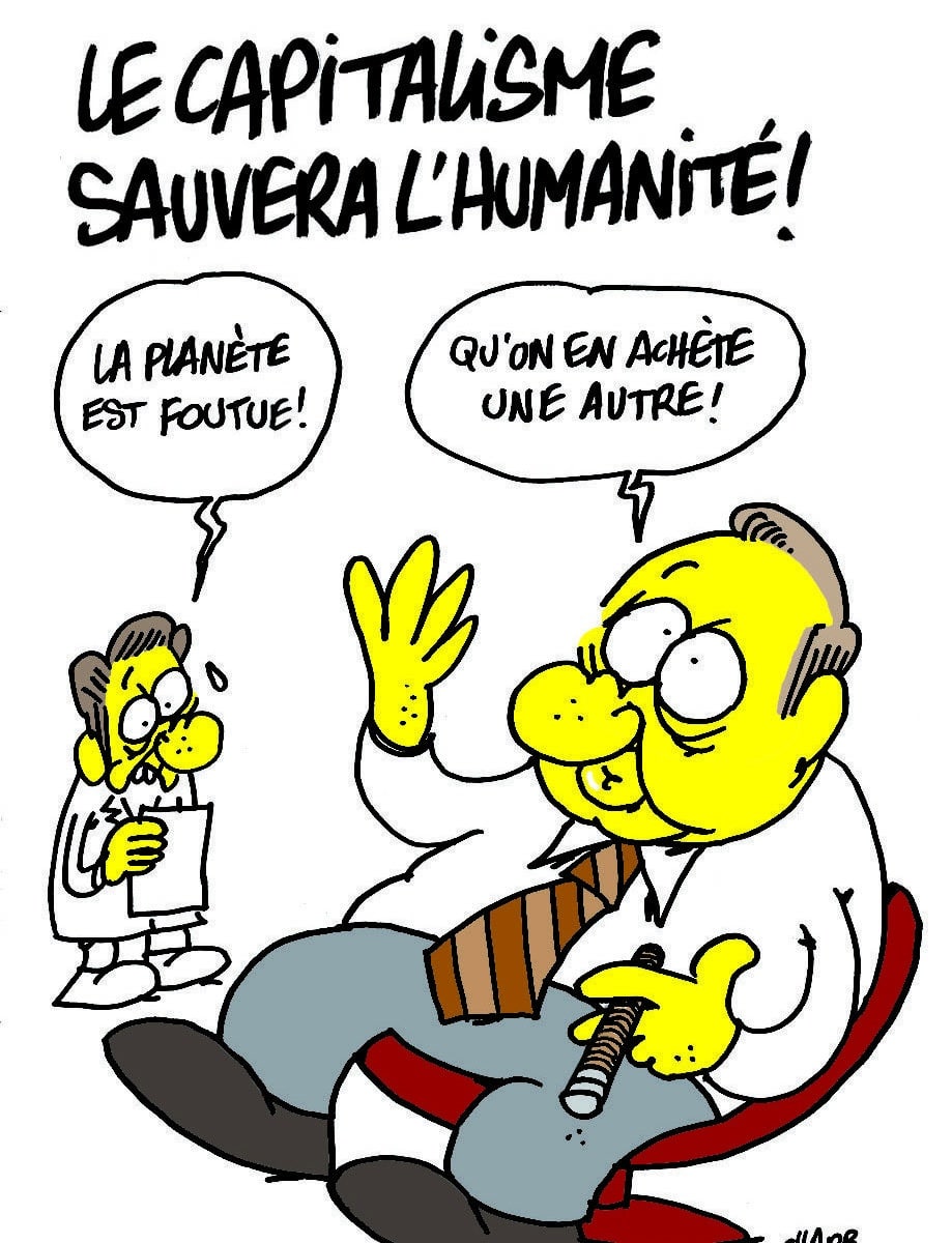 Aujourd’hui, c’est mercredi, jour de publication de Charlie Hebdo. En hommage aux victimes du terrorisme, dont les dessinateurs de presse, journalistes et membres de l’équipe de Charlie Hebdo assassinés ou blessés le 7 janvier 2015, nous republions ici un des dessins de l’hebdomadaire que nous avions reproduit dans notre livre « Après Fukushima, quelles énergies pour demain ? » paru en 2012. Les journalistes de Charlie étaient en effet sensibles à la question environnementale et avaient publié de nombreux dessins sur ce thème. La Fondation GoodPlanet s’associe à tous les « Charlie » qui veulent défendre la liberté d’expression, et qui veulent, malgré la douleur ou la difficulté de la situation, continuer à rire et à se moquer des despotes, des intégristes ou des terroristes.