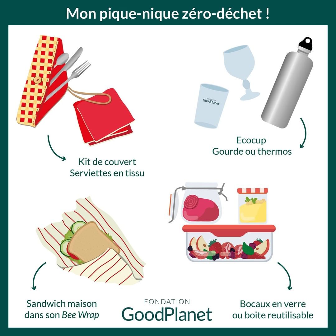 Un pique-nique est souvent source de déchets : assiettes en cartons, gobelets en plastiques, papier aluminium … des déchets qui se retrouvent souvent dans la nature.