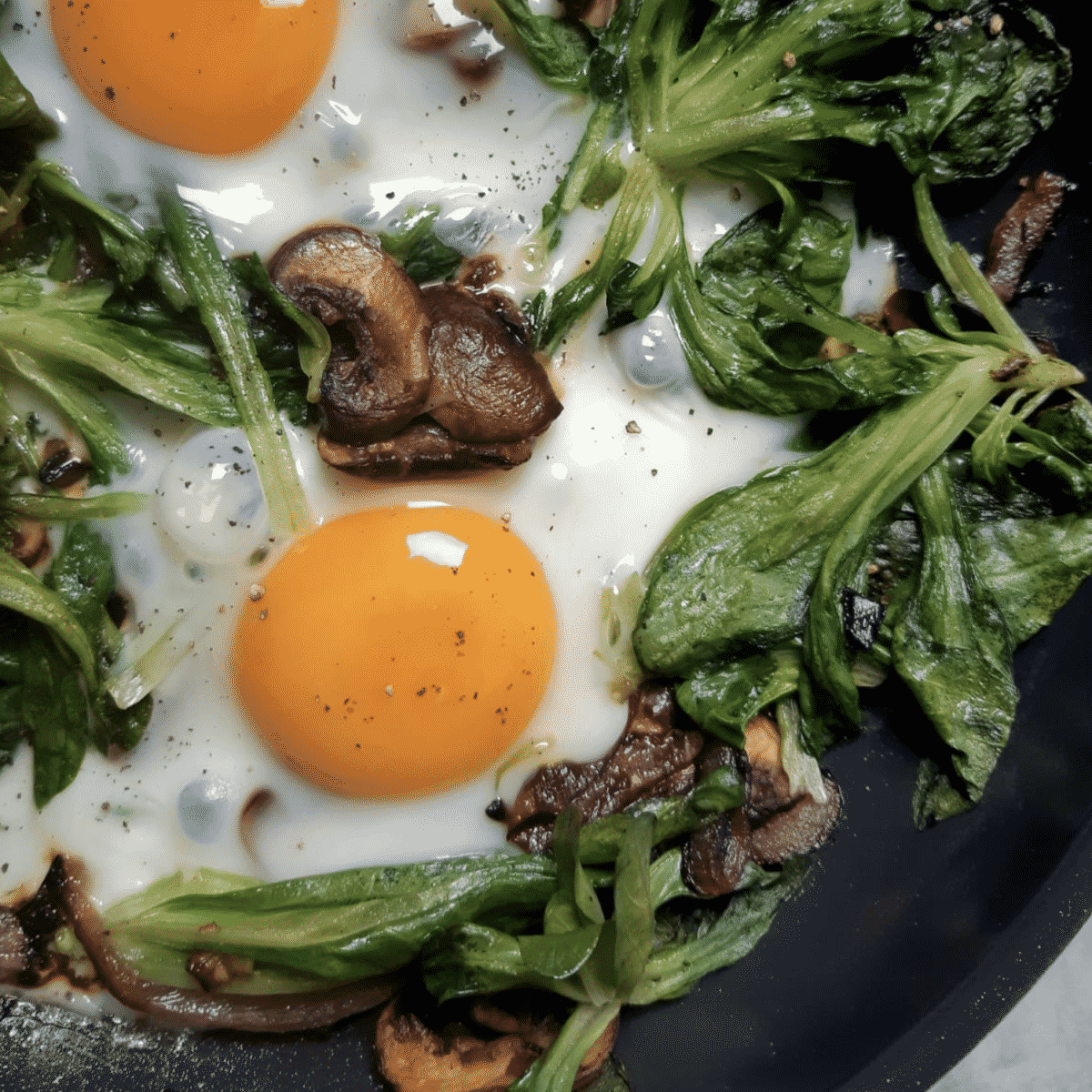 Pour bien commencer la semaine, nous vous proposons une recette végétarienne facile et gourmande pour cuisiner vos légumes de saison : une chakchouka de mâche aux champignons !