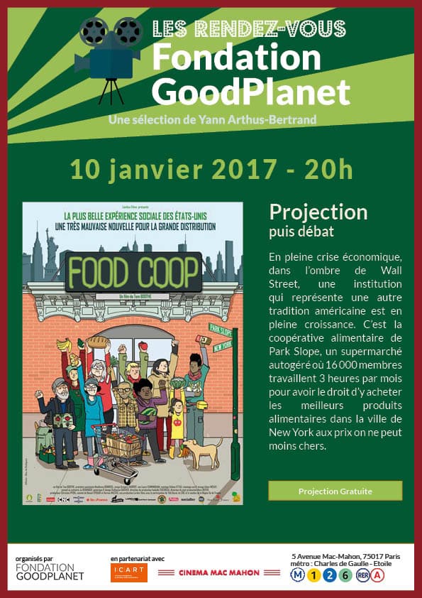 Les équipes de la fondation vous convient à la projection gratuite du film Food Coop de Tom Boothe, le mardi 10 janvier (à 20h).