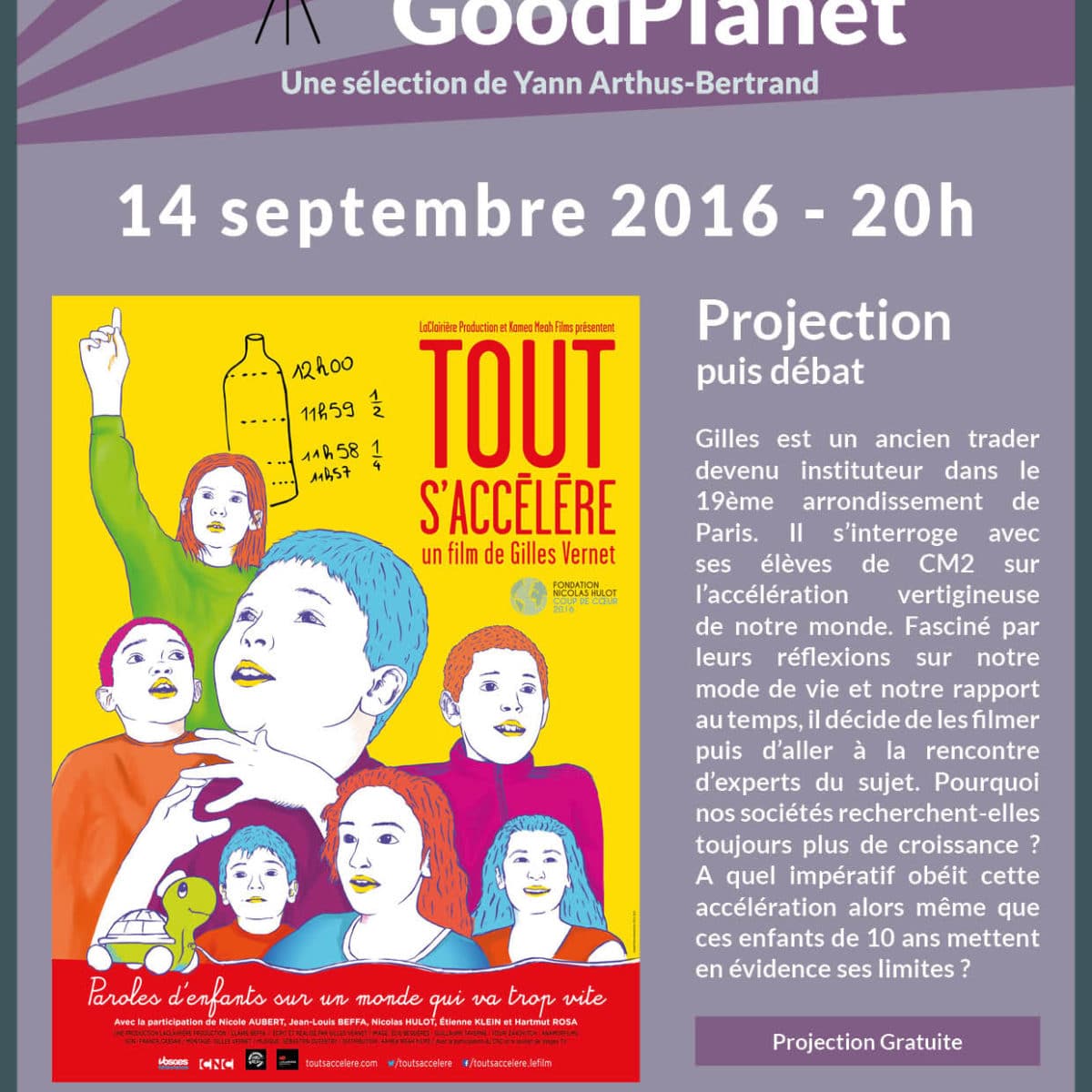 Les équipes de GoodPlanet vous convient à la projection gratuite du film Tout s’accélère de Gilles Vernet le mercredi 14 septembre (à 20h).