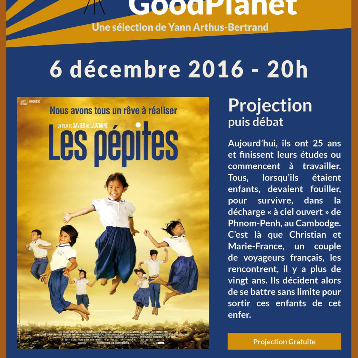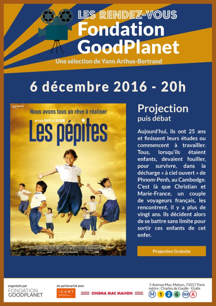 Les équipes de GoodPlanet vous convient à la projection gratuite du film Les pépites de Xavier de Lauzanne, le mardi 6 décembre (à 20h).