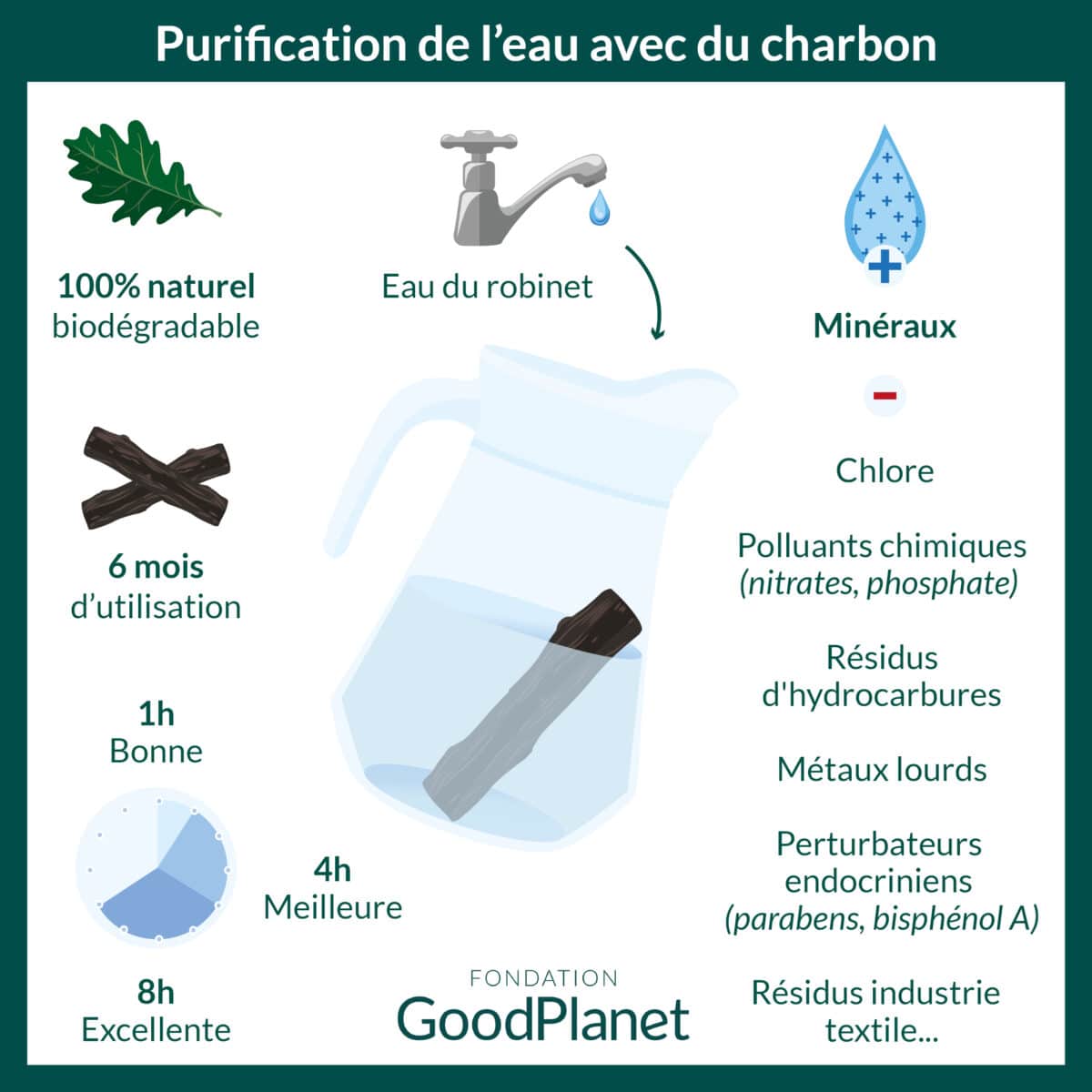 Aussi appelé « charbon actif », ce principe japonais permet de filtrer l’eau du robinet.. et c’est zéro déchet !