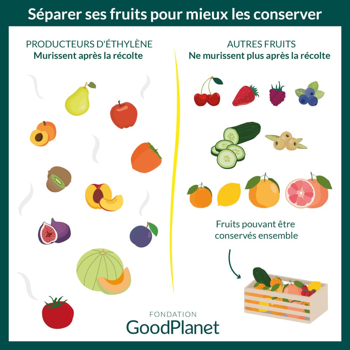 Pour préserver vos fruits, évitez de placer les fruits climactériques dans le panier, isolez-les et consommer les rapidement.