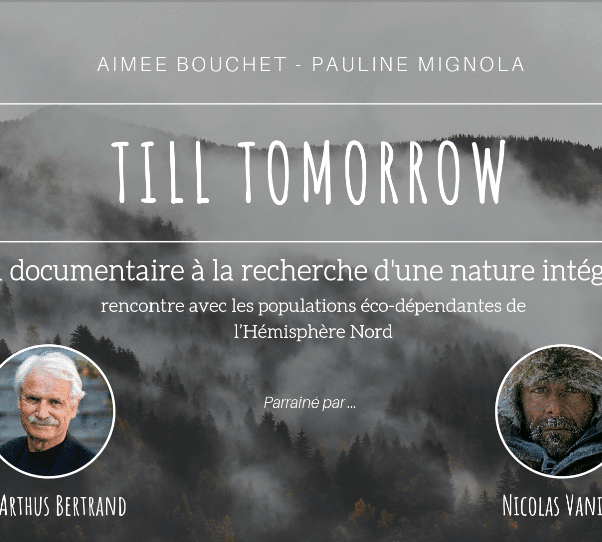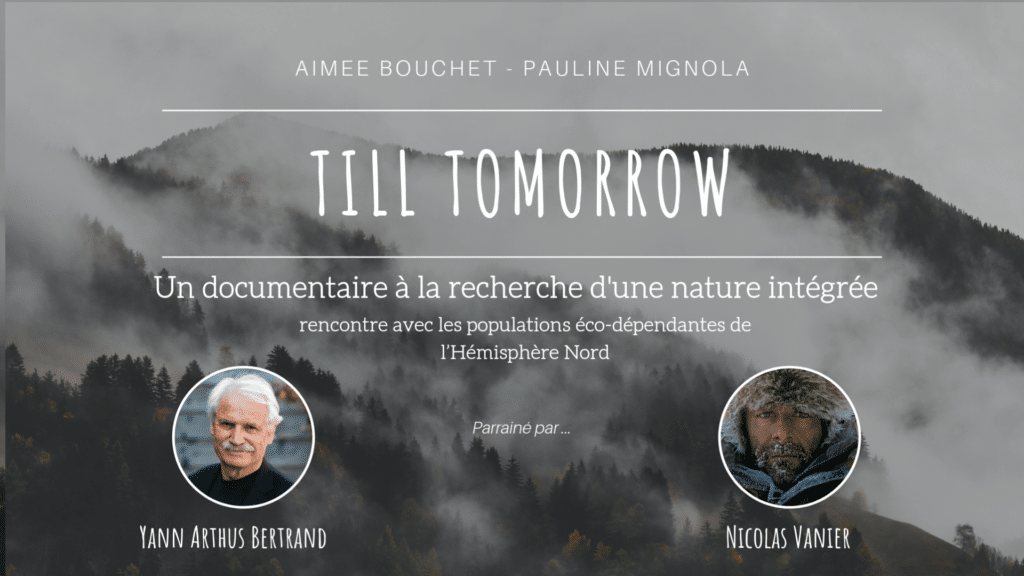 Till Tomorrow est un documentaire en 3 formats (une web-série en libre accès sur Internet, un court-métrage et un long-métrage) qui retrace la rencontre avec les populations éco-dépendantes de l’hémisphère Nord. L’objectif est d’explorer et découvrir les pratiques d’intégration de l’environnement dans le quotidien de ces populations comme outils de lutte pour sa protection. Ce documentaire, porté par l’association À Portée De Main, est parrainé par le photographe Yann Arthus-Bertrand et le réalisateur Nicolas Vanier.