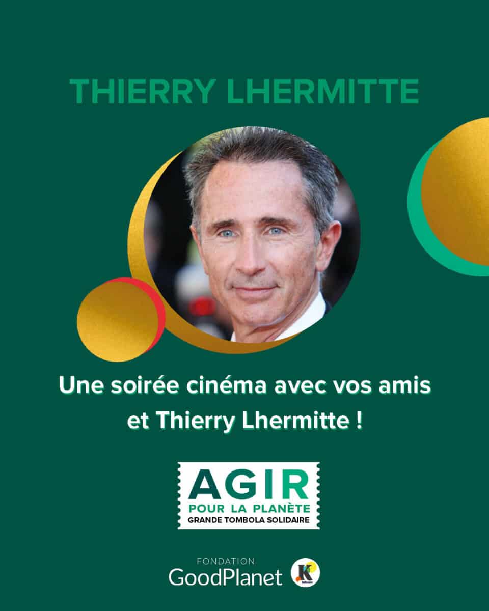 Icône du cinéma français, Thierry Lhermitte vous offre la possibilité de vivre une expérience unique dans la salle de cinéma de la Fondation GoodPlanet… en sa présence ! Choisissez un film de Thierry Lhermitte, invitez vos proches (max 20 pers.) et vivez une soirée entière en sa compagnie.