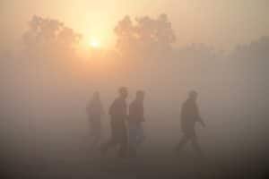 Des personnes marchent dans le smog de la ville indienne de Jalandhar © Shammi MEHRA / AFP
